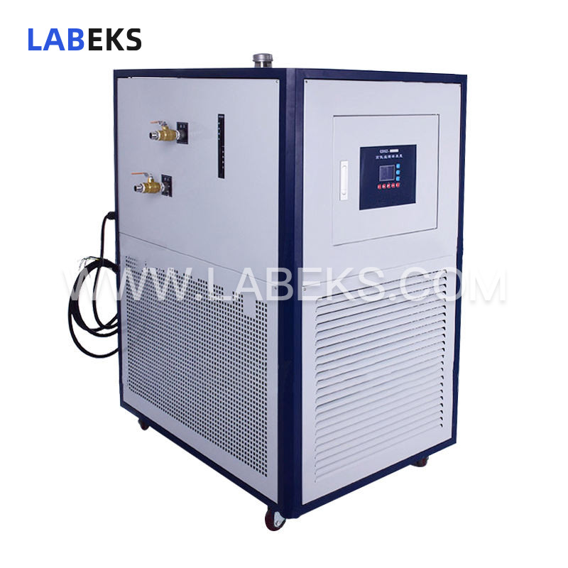 This heating cooling circulator, integrating refrigeration, heating, circulation and control systems, uses a fully hermetic compressor-driven mechanical refrigeration unit with plate heat exchangers, expansion valves and pressure protectors to meet cooling demands, while electric heating tubes handle fluid heating for indirect reactor material temperature regulation.