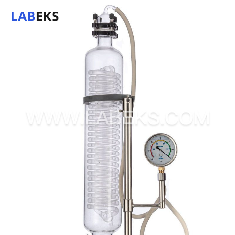 Vertical three-tier serpentine coil condenser, paired with main and auxiliary dual condensers, guarantees high solvent recovery rates.