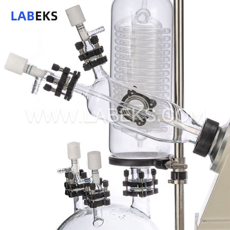 7. Vertical three-tier serpentine coil condenser paired with primary + secondary dual condensers to guarantee high solvent recovery rates.