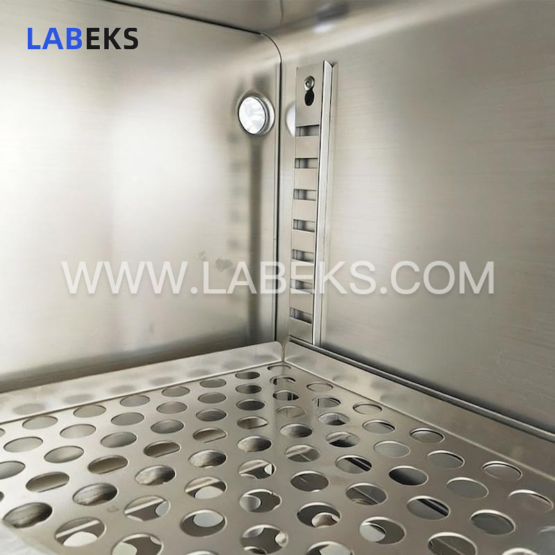Featuring a cold-rolled steel outer shell and a mirror-finish stainless steel working chamber, this oven utilizes silicon-aluminum fiber as its insulation material. A grid-style stainless steel partition is fitted inside the working chamber to securely hold test samples during drying processes. Equipped with a vertical dual-duct air jacket and turbine centrifugal forced air supply, it ensures uniform temperature distribution, boasts a structurally sound design, and presents a sleek, professional appearance.