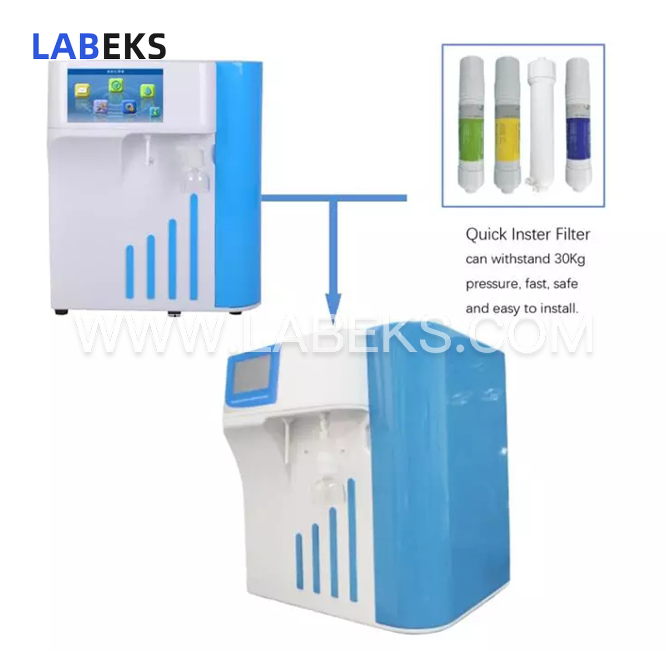 The LAB-WP Series ultrapure water purifier is ideal for a wide range of applications, including physical and chemical testing, biochemical analysis, blood assays, microanalysis, specialized cleaning, and HPLC, IC, GC analytical experiments.